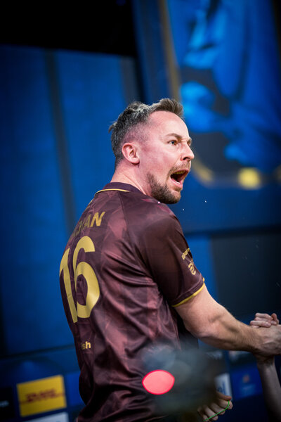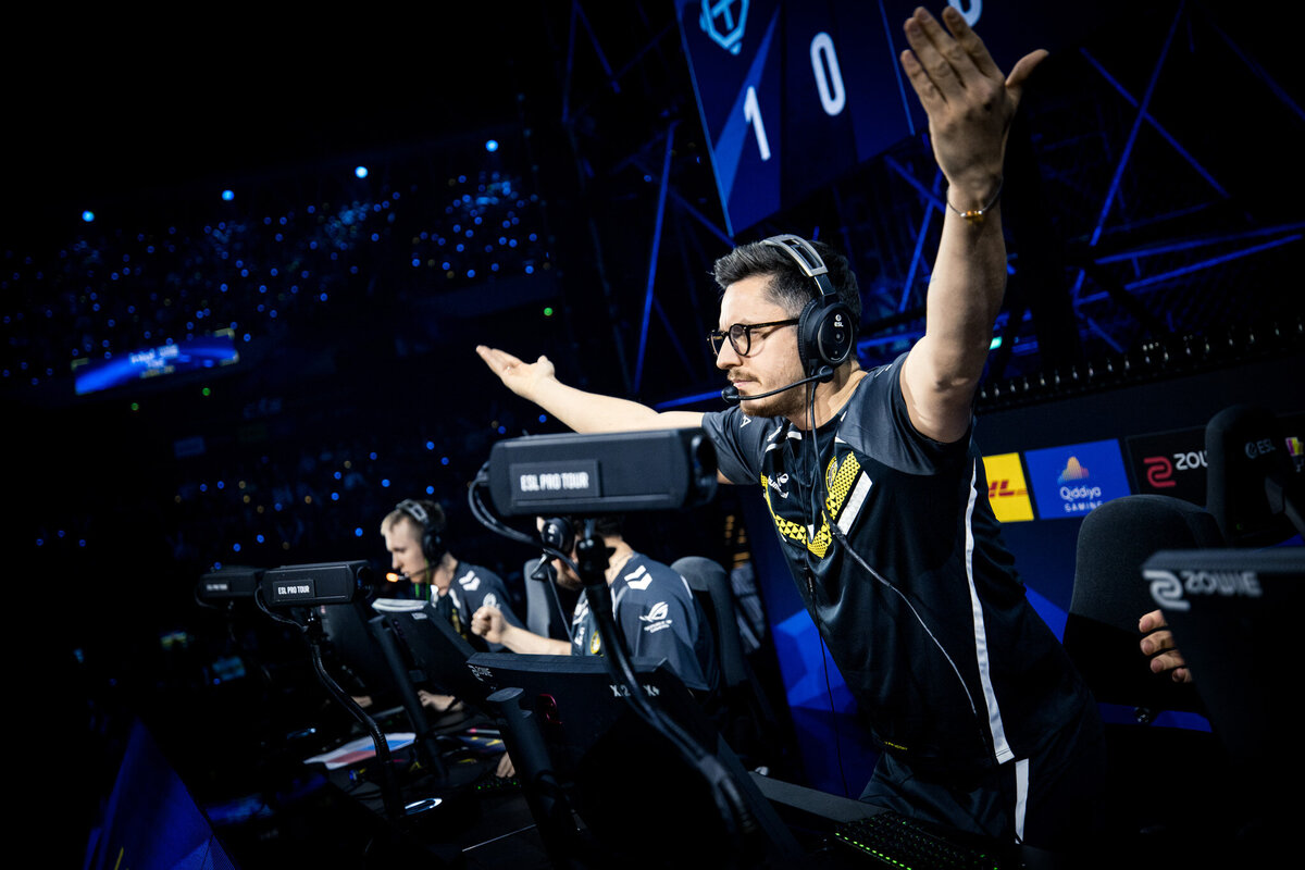 Rises after a winning round during the finals of IEM Katowice 2025