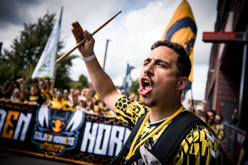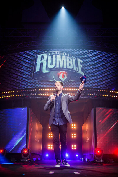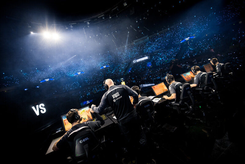 The team logo reflects in the gold bar as Team Liquid wins the Intel Grand Slam.