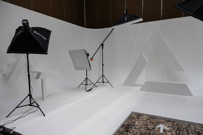 Lighting was one of the biggest challenges. The setup had to remain clean and bright, but if the light became too flat, the triangle shape would no longer be visible. After several tests, I found the right balance: just enough shadow to define the form without losing the purity of the white space. That look then had to be duplicated across all three sets so every photo, regardless of location, matched perfectly.