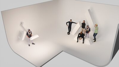 From the very beginning, I knew the set should be all white. The simplicity of that space would allow every detail of the player to stand out. Together with a 3D team, I developed 3D remders and technical drawings before construction began. On site in Riyadh, three identical sets were built to handle the massive number of players photographed each day during the eight-week event.