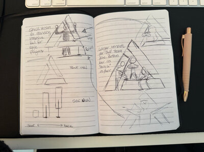 While reviewing the event’s key visuals, I noticed the triangle symbol used throughout the tournament. It also appears as the physical key that winners place into the totem at the end of the event to claim their title. I began exploring the triangle as a design element, experimenting with size, depth, and placement until it worked both for individual portraits and full team photos.